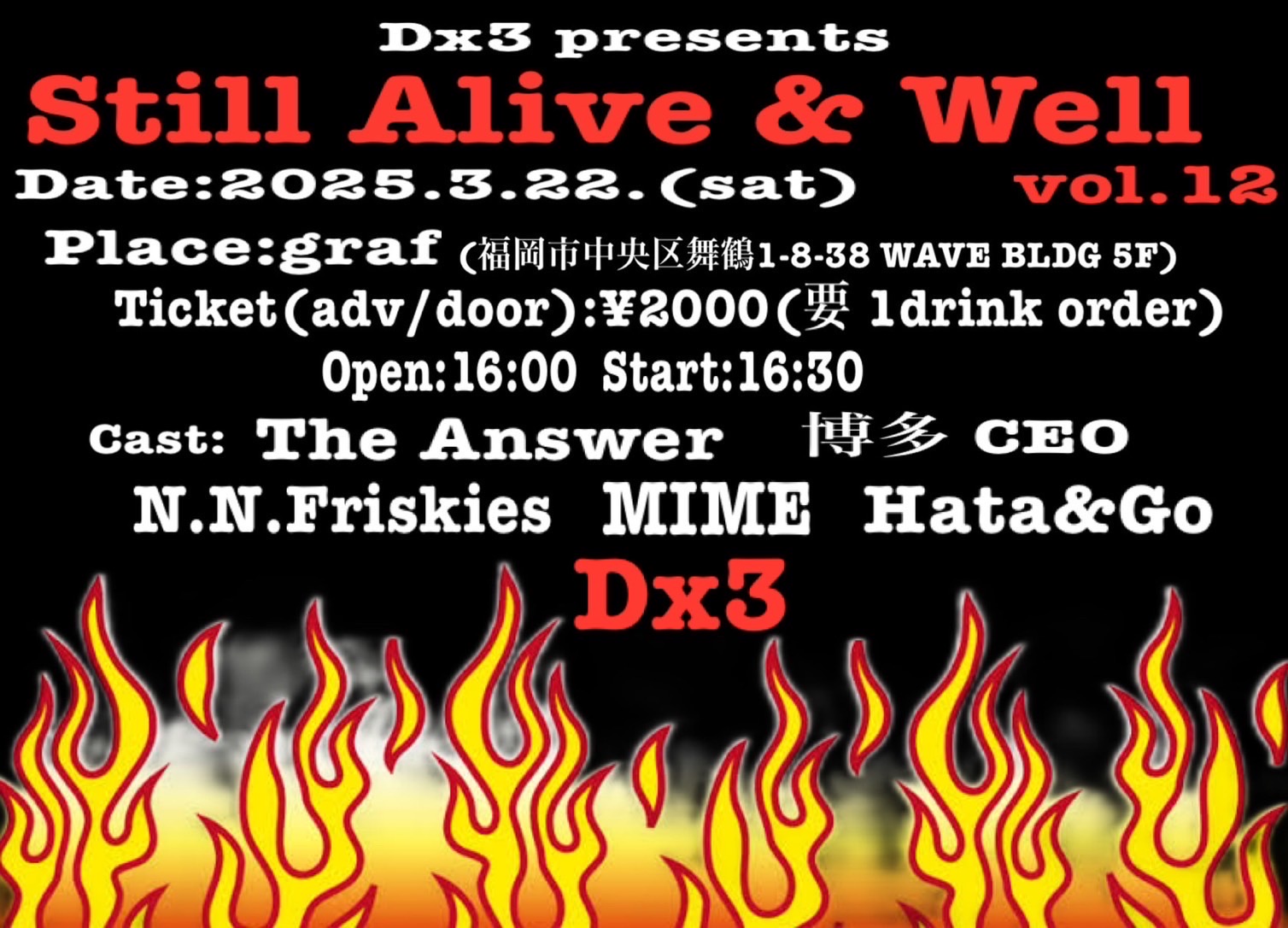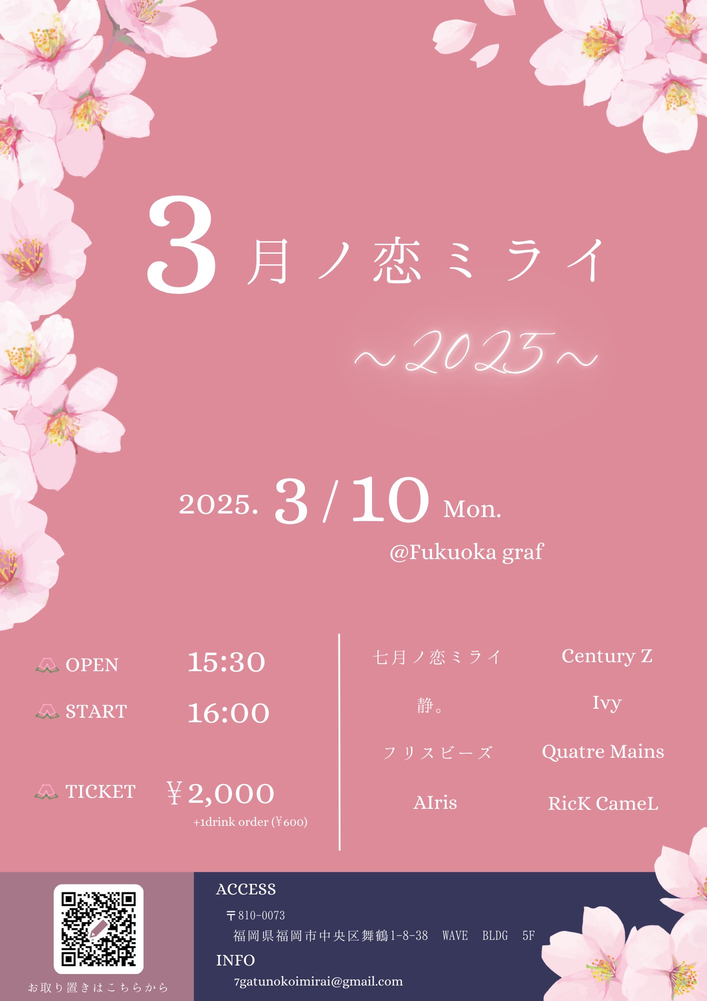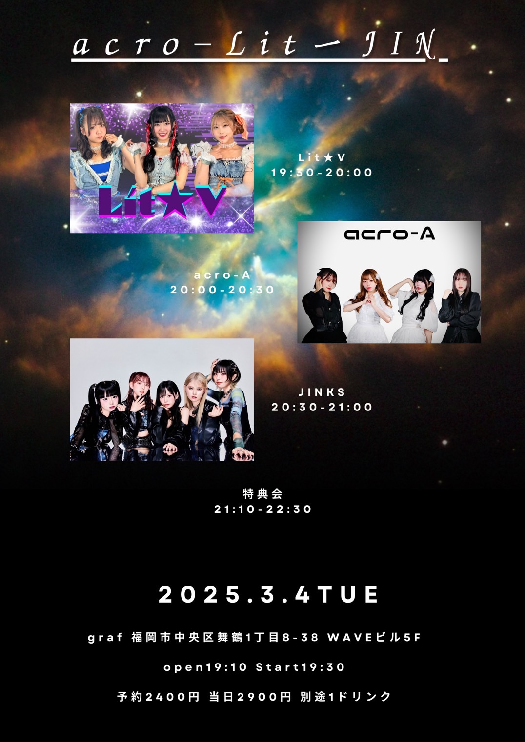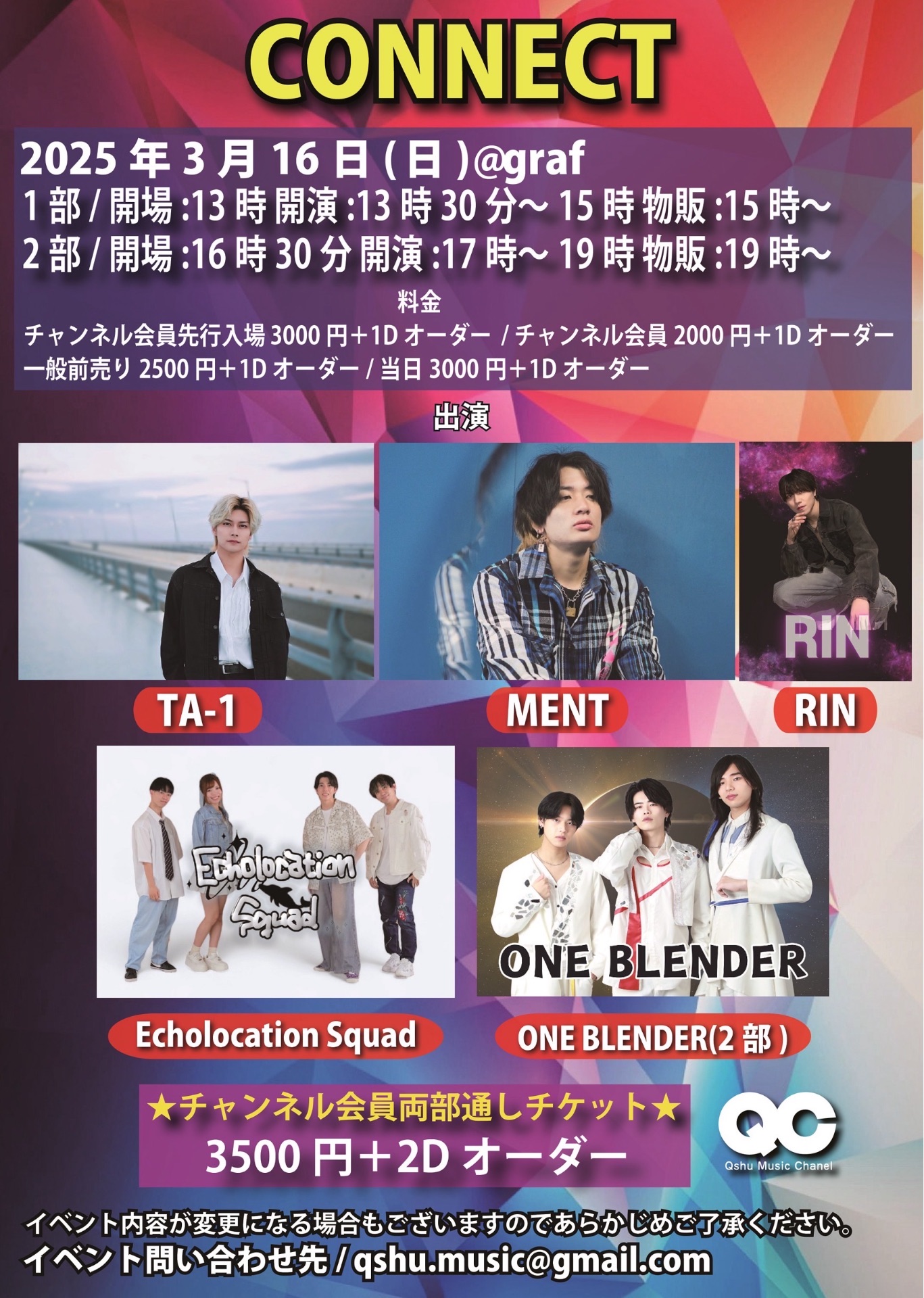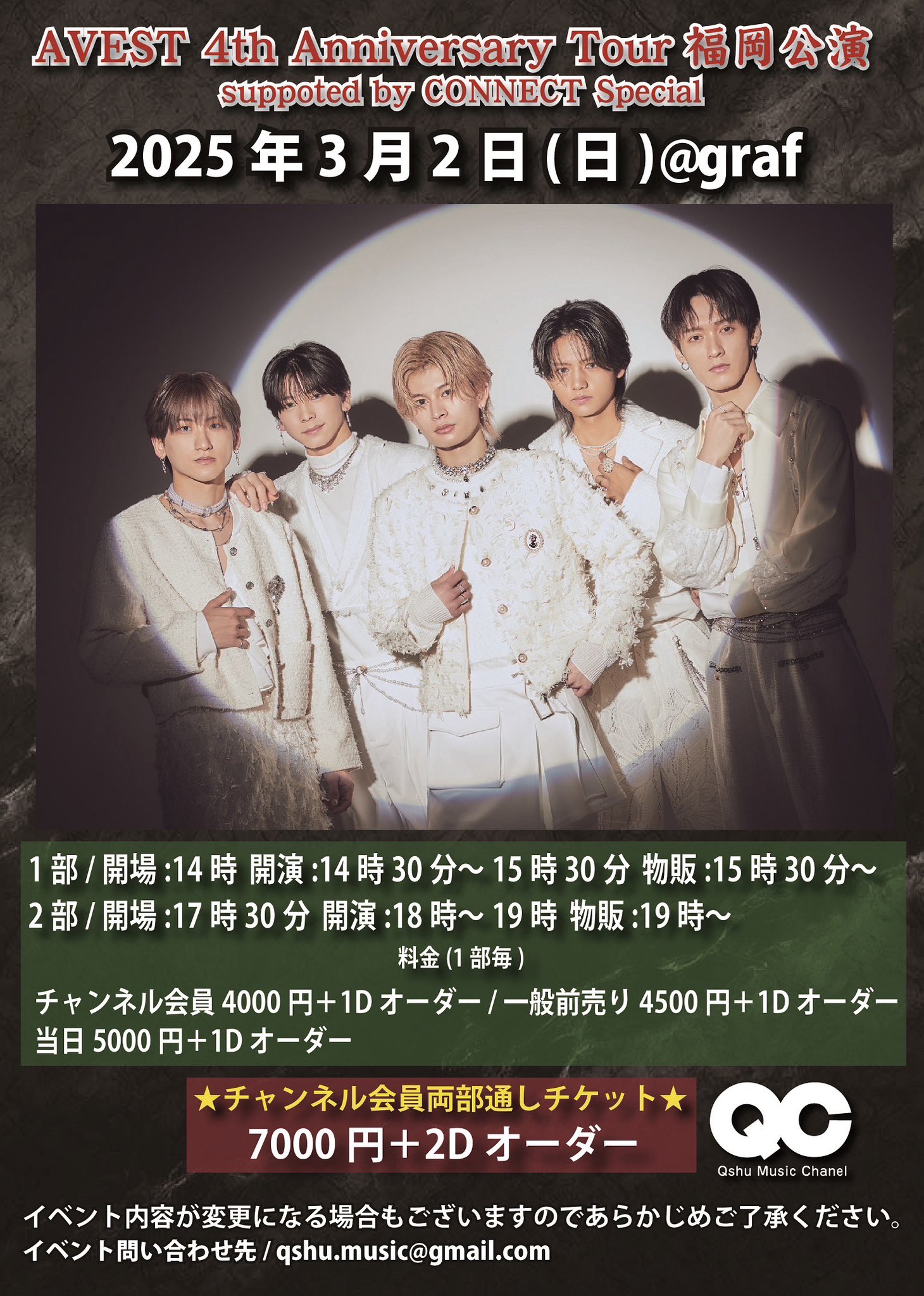・開場時間、開演時間が変更になる可能性もございますので、予めご了承ください。